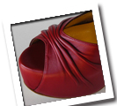 Eccentric platform pump with thin ankle strap made in burgundy kidskin, 15cm spiked heel, 5cm platform and genuine leather sole, insole and lining. Entirely hand-made from highest quality leather and natural fabric by master Italian shoemakers.