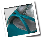 Assymetric design chanel with frontal crossed straps. Made in turquoise kidskin, with 100mm heel and decorative hemmed leather insole. Entirely hand-made from high quality leather and natural fabric by master Italian shoemakers.
