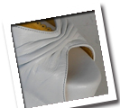 Eccentric platform pump with thin ankle strap made in white kidskin leather, 15cm spiked heel, 5cm platform and genuine leather sole, insole and lining. Entirely hand-made from highest quality leather and natural fabric by master Italian shoemakers.