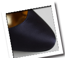 Retro Stiletto with roundtoe. Made with blue silk with 6inch spiked heel and real leather sole, insole and lining. Entirely hand-made using highest quality leather and natural fabric by master Italian shoemakers.