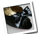 Black patent leather croc print sandal with bow, ankle strap and 5inch high heel, genuine leather sole, insole and lining. Entirely hand-made usinghighest quality leather and natural fabric by master Italian shoemakers.
