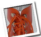 Dominatrix style sandal made in tangerine kidskin, with 2 frontal straps, opened back and eyelets. With 4inch spiked heel and genuine leather sole, insole and lining. Entirely hand-made from highest quality leather and natural fabric by master Italian shoemakers.
