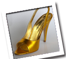 Front opened elegant sandal with elastic back ankle. Made with yellow plated kidskin and 3inch spiked heel. Entirely hand-made from highest quality leather and natural fabric by master Italian shoemakers.